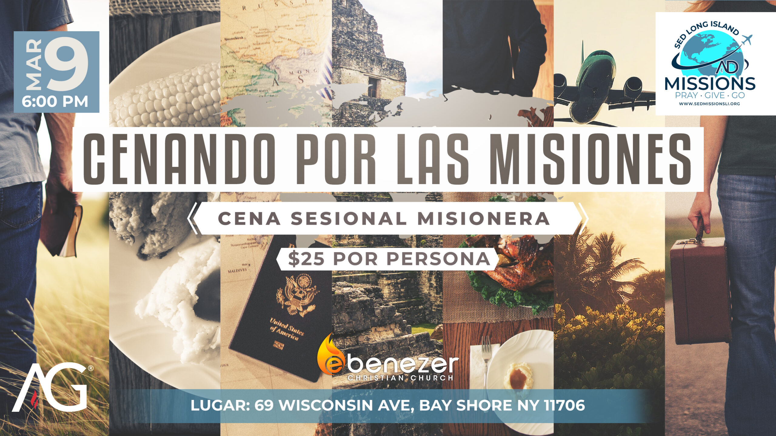 Buscamos motivar a la sesión de Long Island para orar por los misioneros y las naciones. Enviar misioneros y además ir hacia las naciones sin dejar de lado el trabajo local. Motivar al pueblo de Dios a dar para las misiones y así cumplir con la tarea de: Ir, enviar, dar y orar.